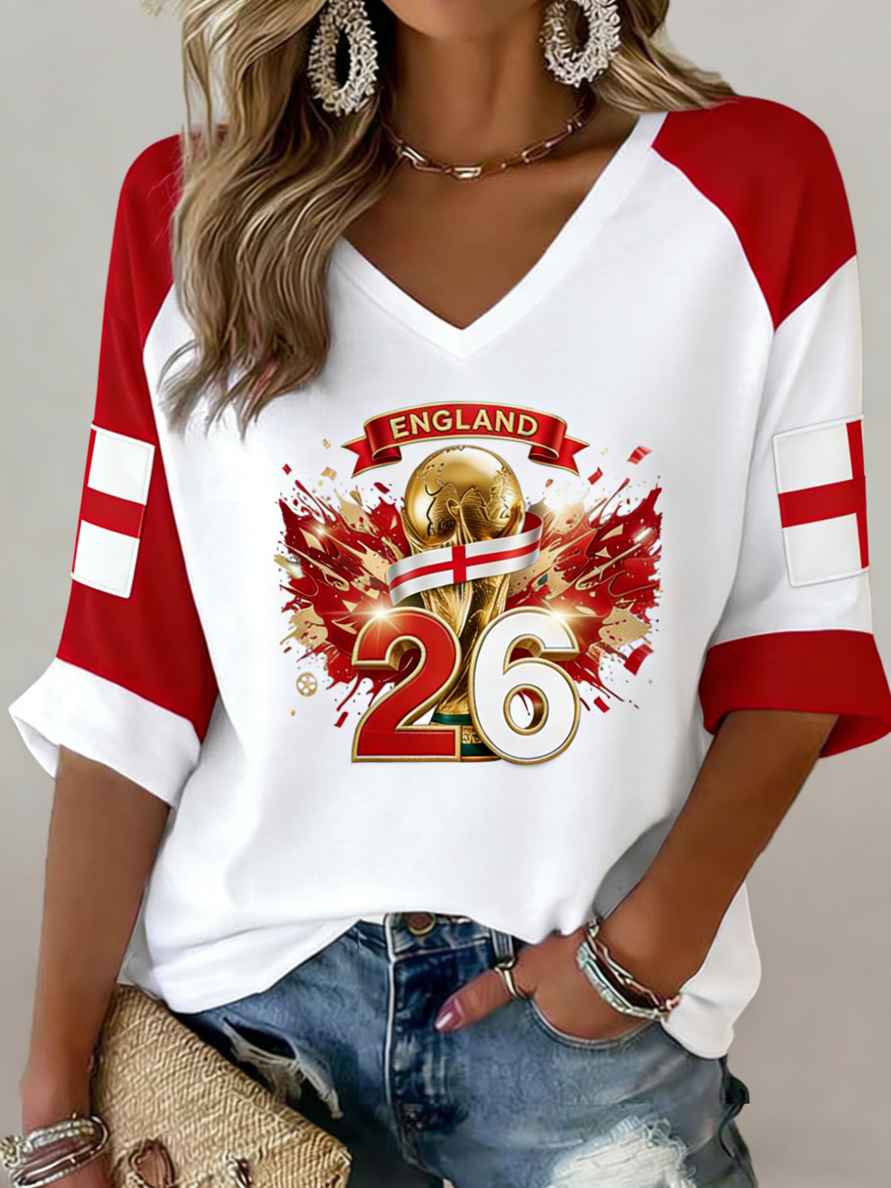 Women's England Football Fan Art Print V-Neck T-Shirt