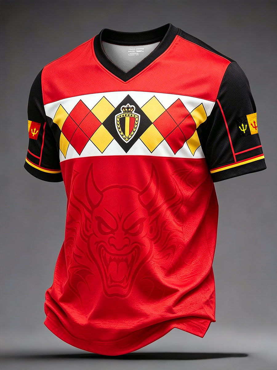 Men's Belguim Football Lover Les Diables Rouges Printed Casual Tops