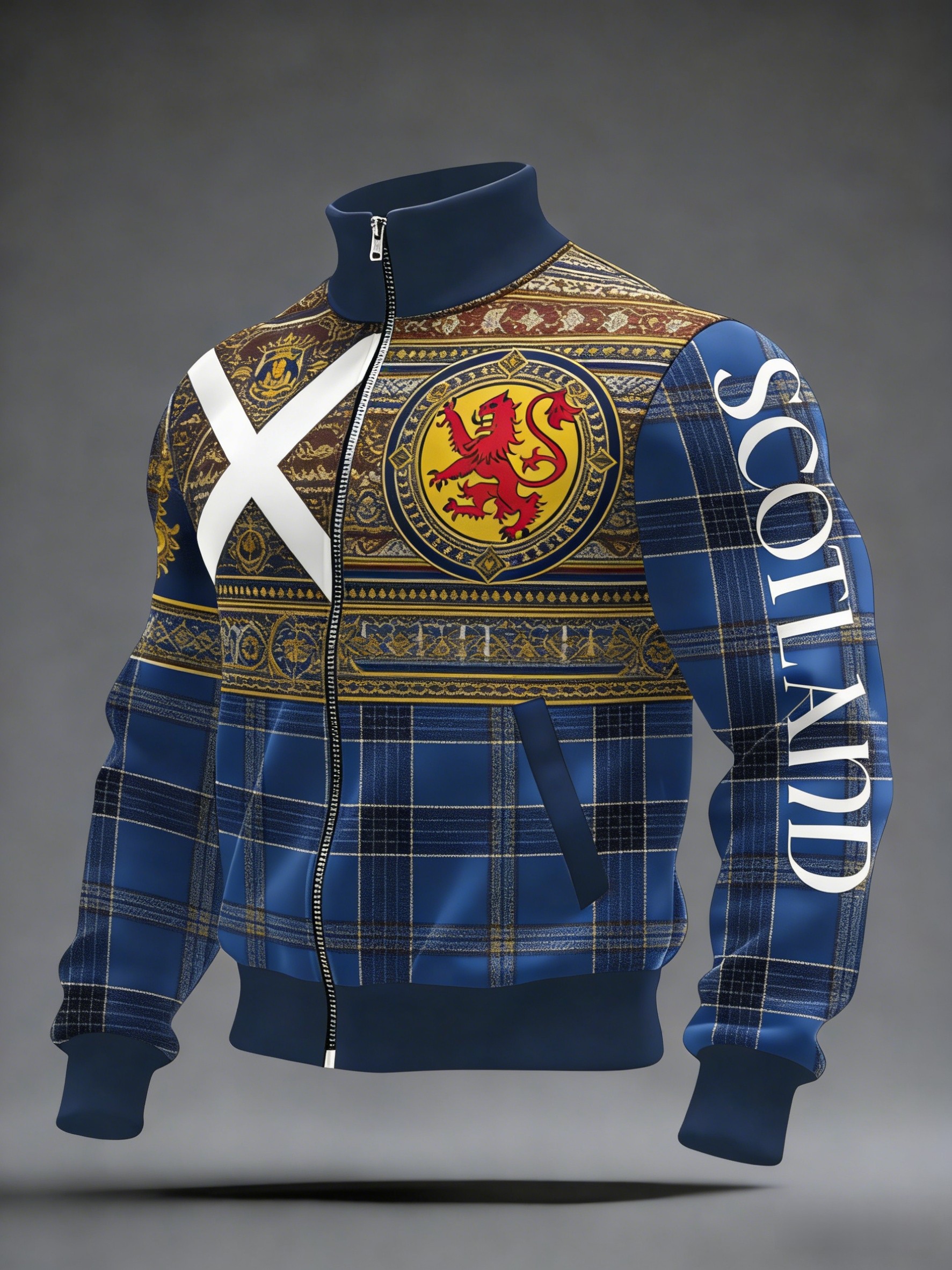Unisex Scotland Football Lover Tartan Army Printed Casual Stand Collar Jacket
