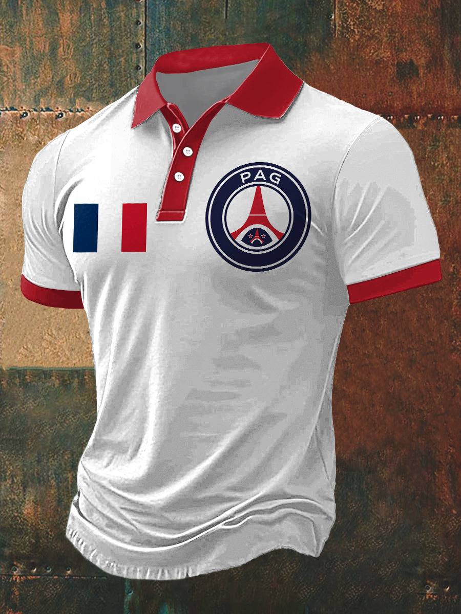 Men's Paris Print Polo Neck Short Sleeve T-Shirt