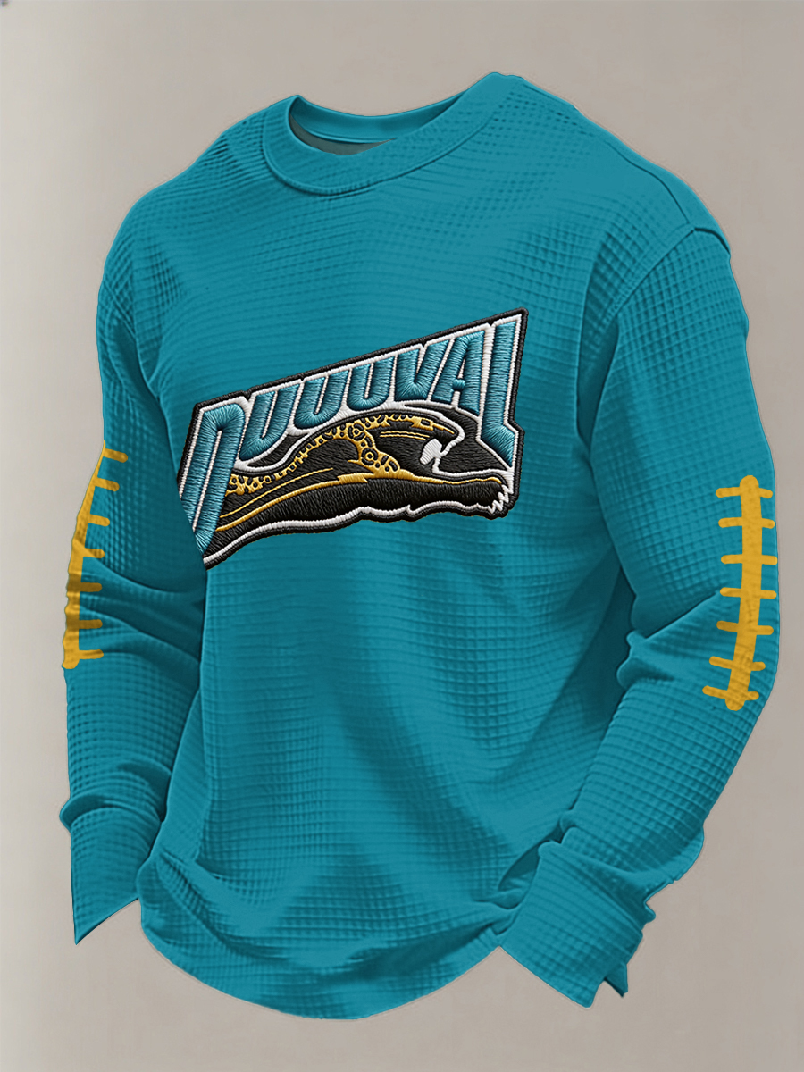 Men's Jaguars Print Football Fans Gameday Casual Waffle Long Sleeve T-Shirt