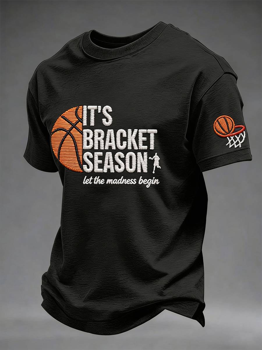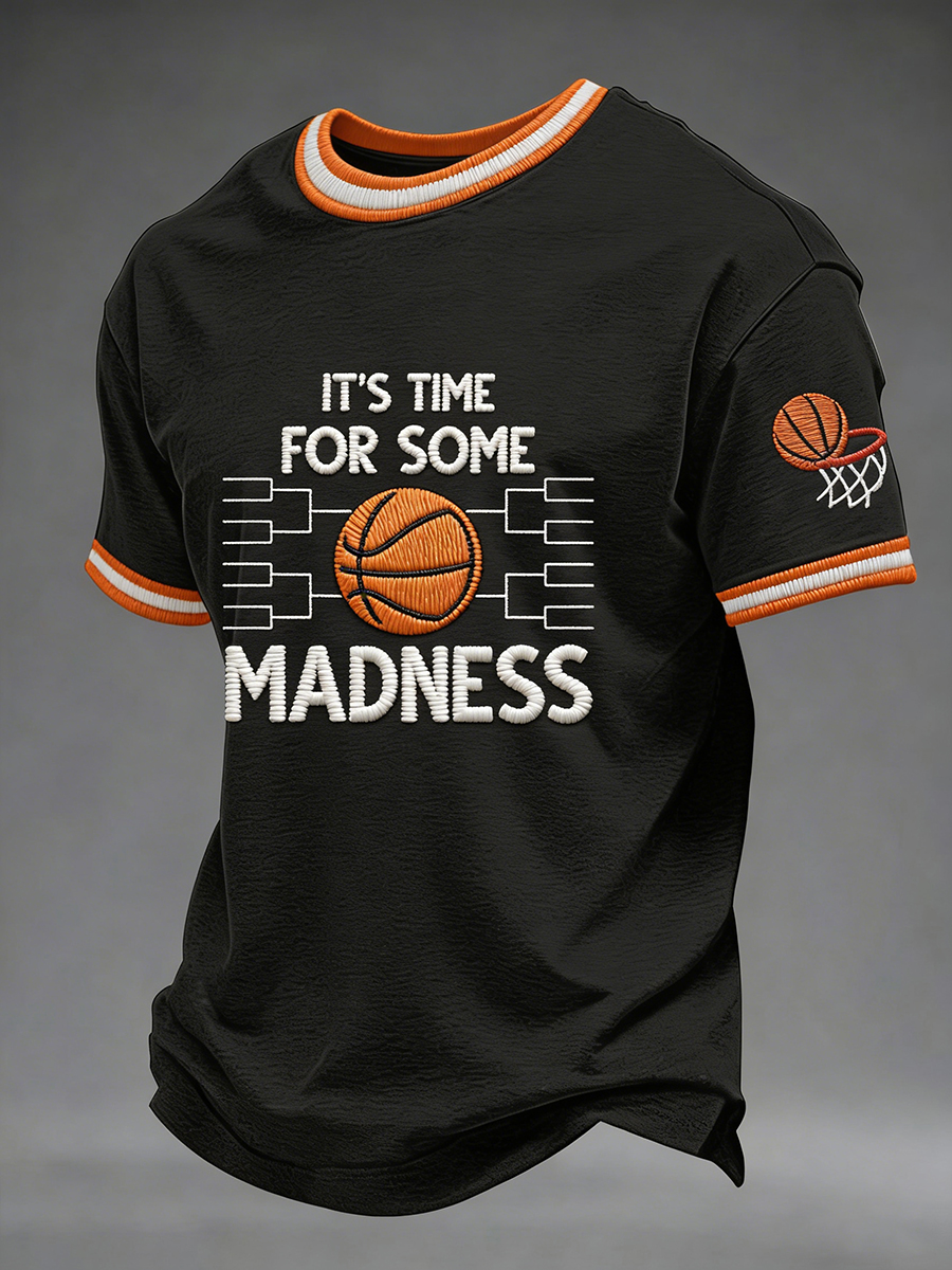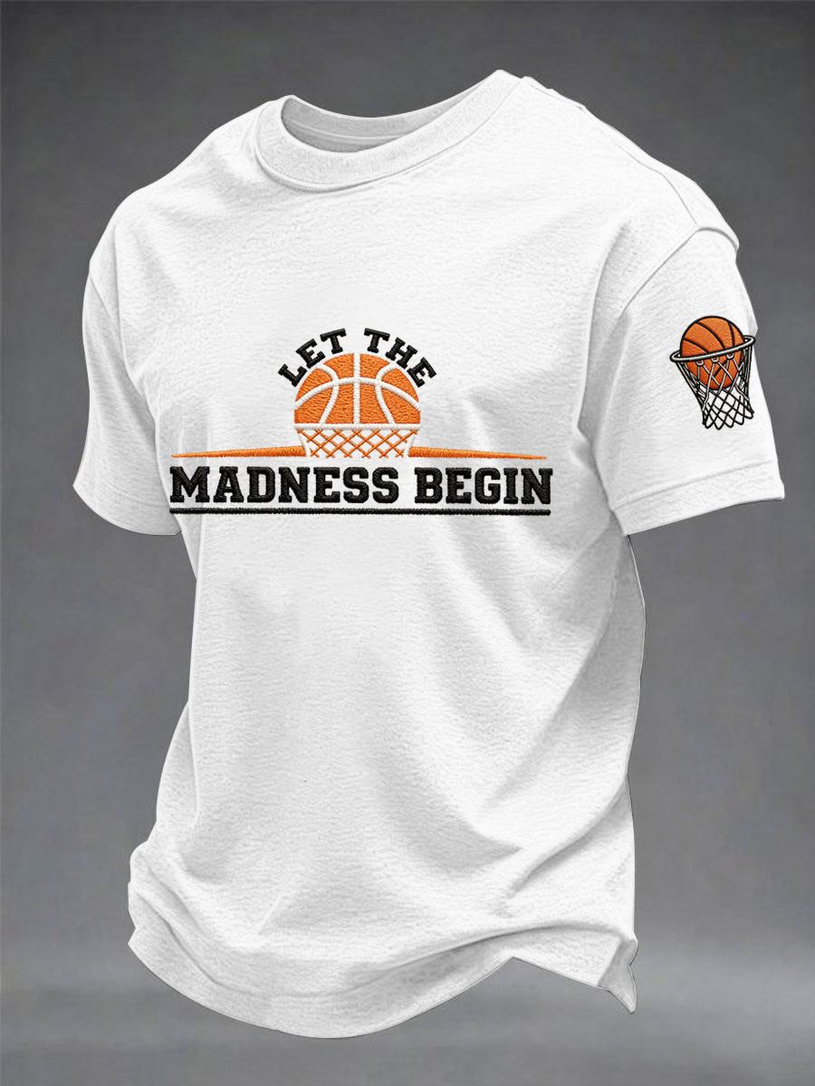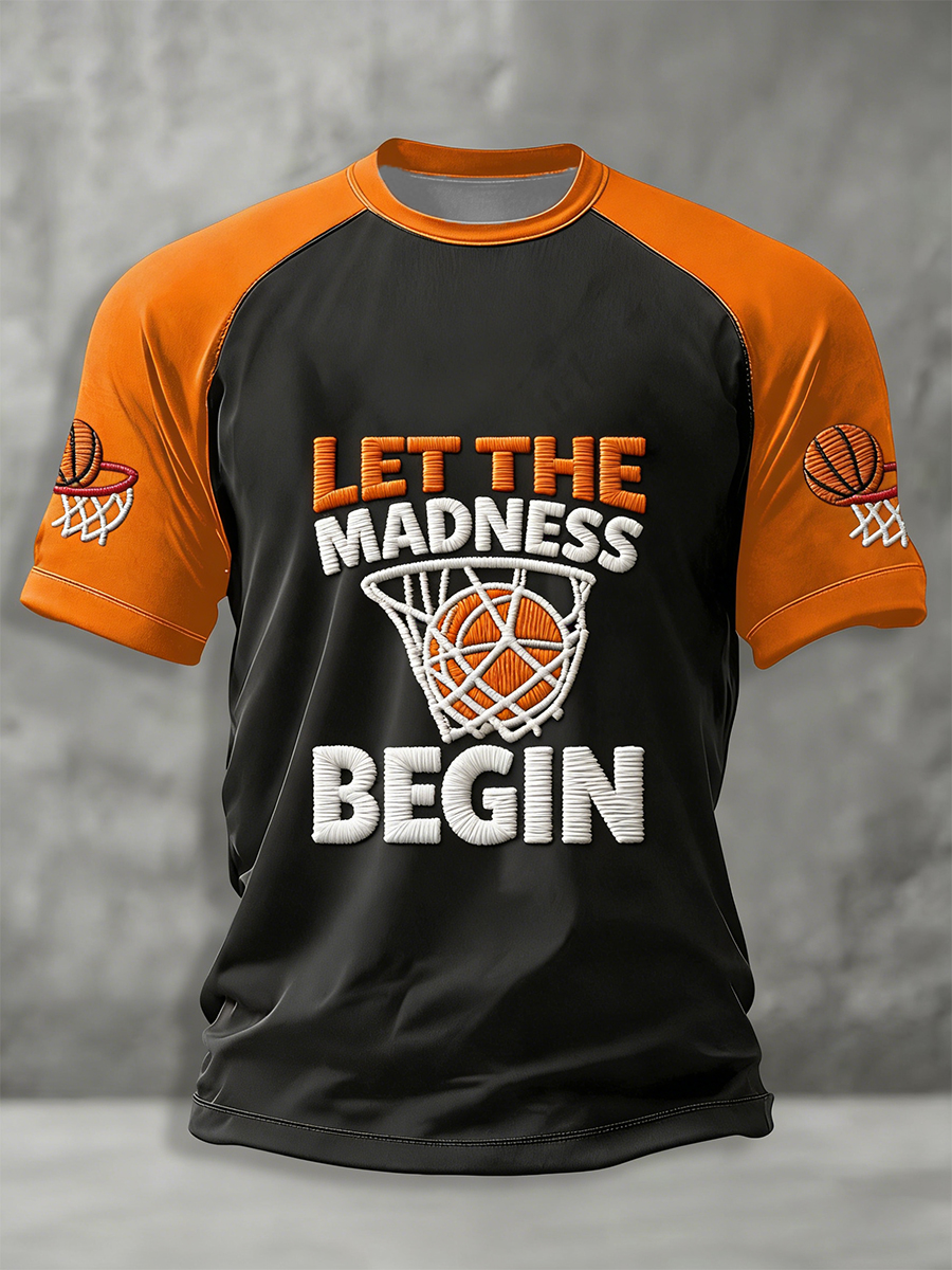 Men's Let The Madness Begin Print March Madness Basketball Lovers Casual T-shirt