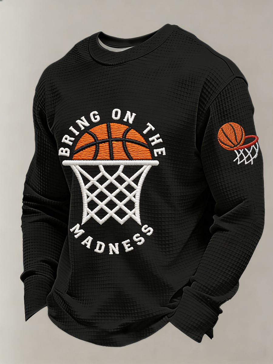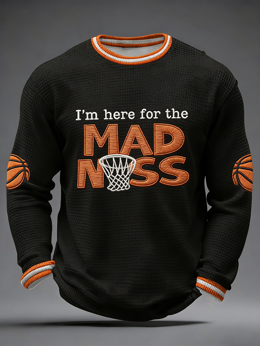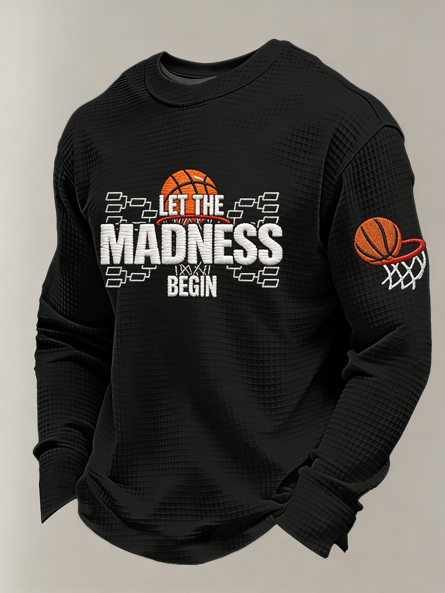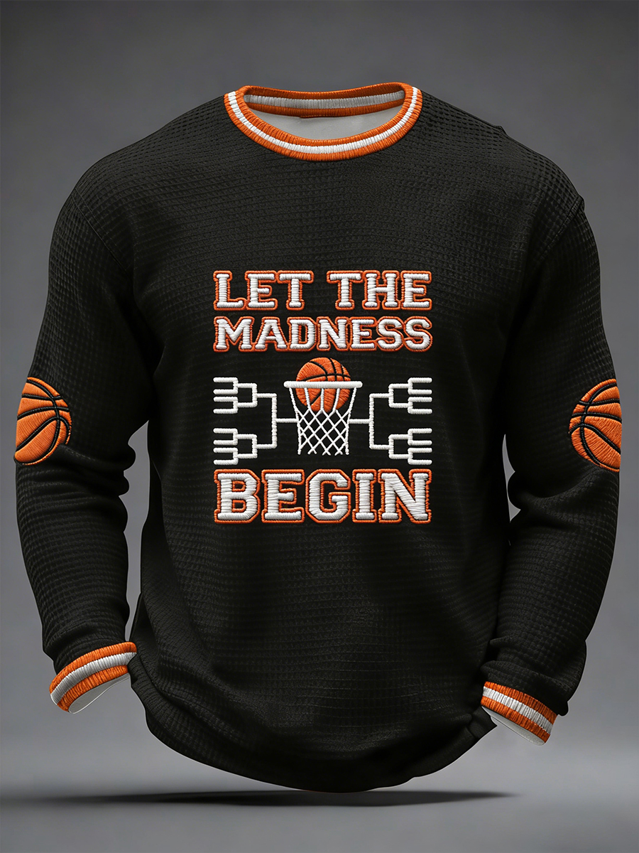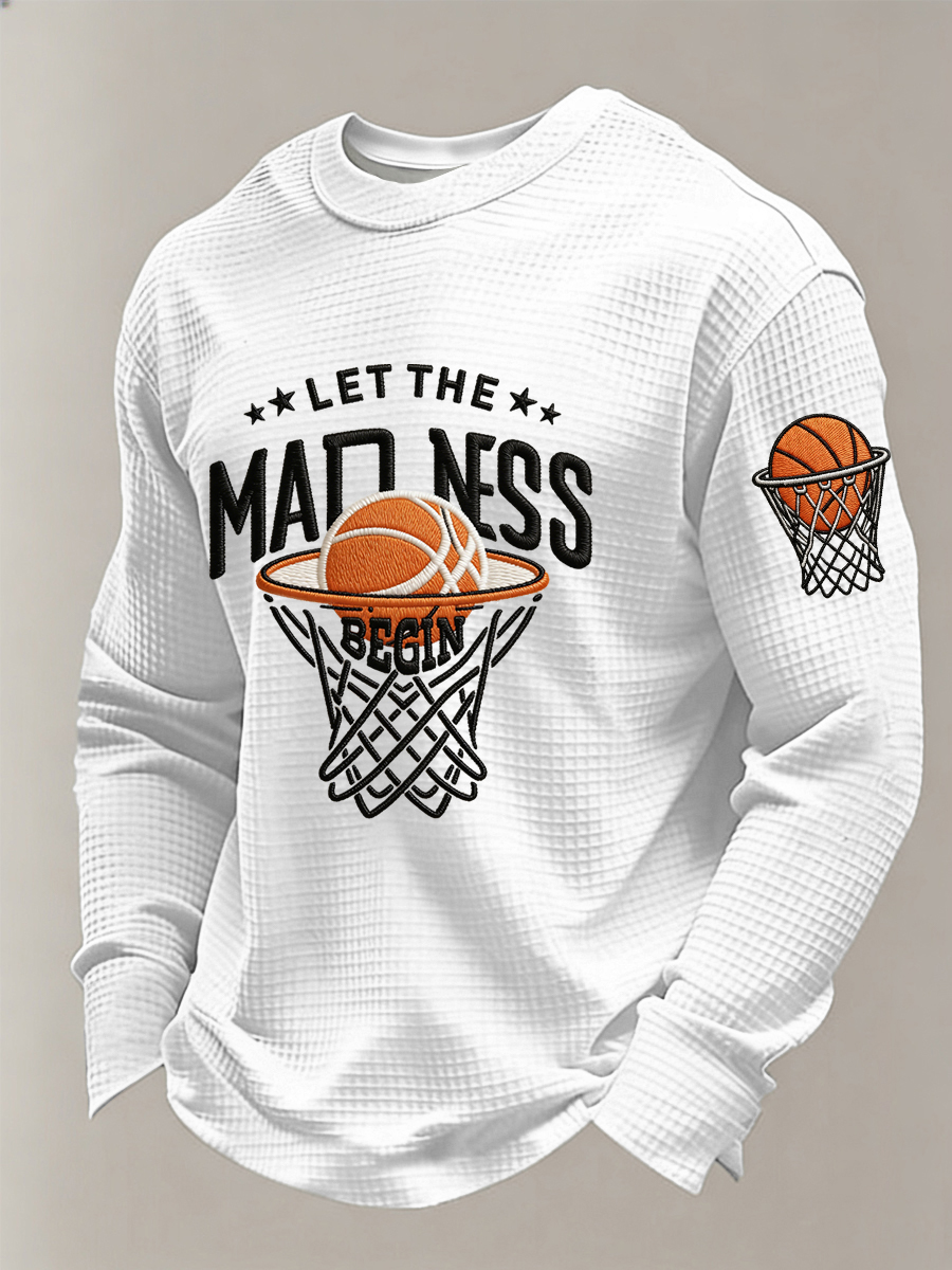 Men's Let The Madness Begin Print March Madness Basketball Lovers Casual Waffle Long Sleeve T-Shirt