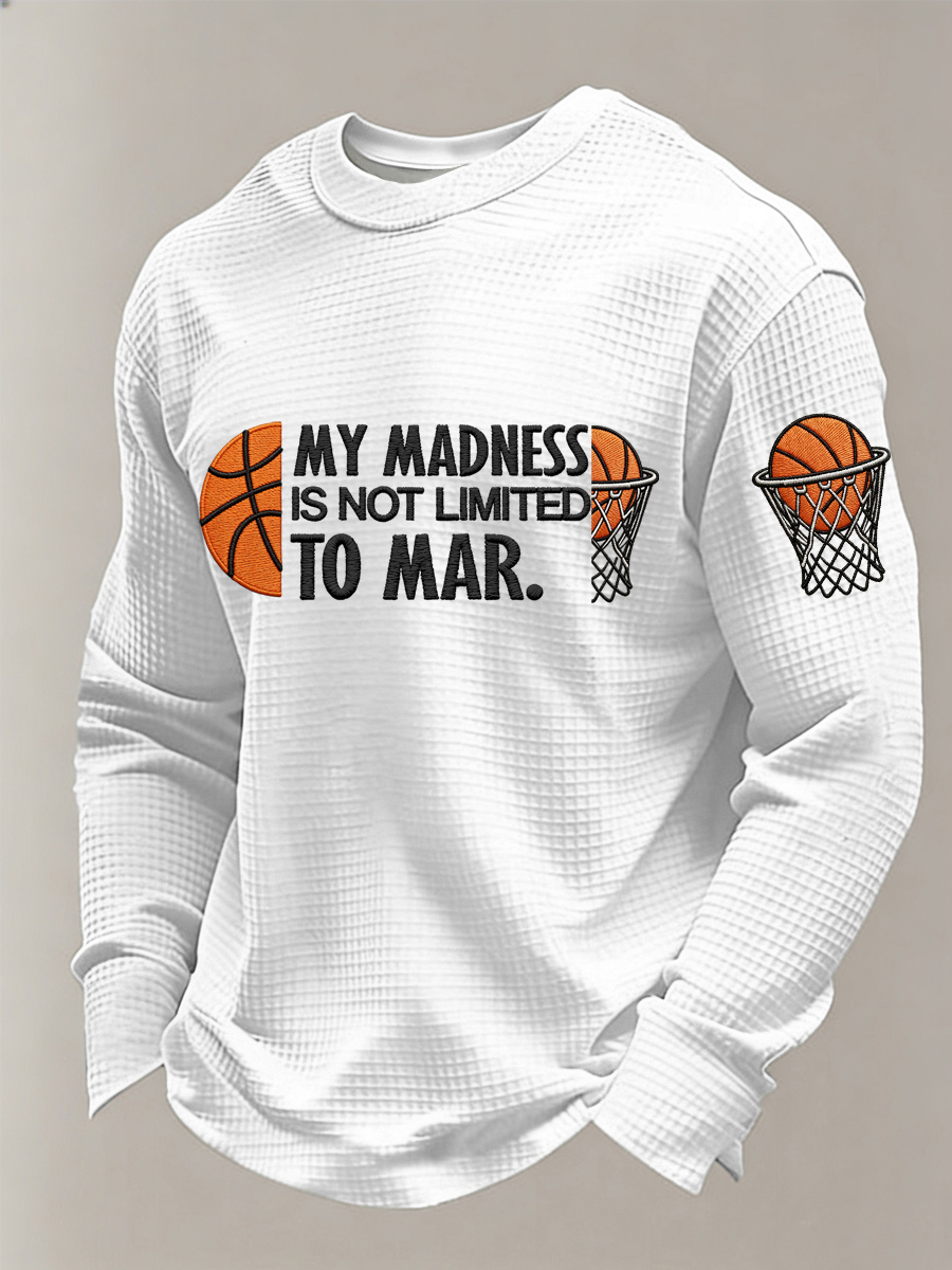 Men's My Madness Is Not Limited To March Print March Madness Basketball Lovers Casual Waffle Long Sleeve T-Shirt