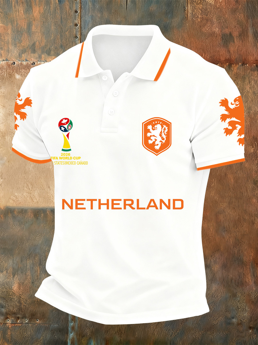 Men's 2026 Netherlands World Cup Supporter Printed Polo Shirt