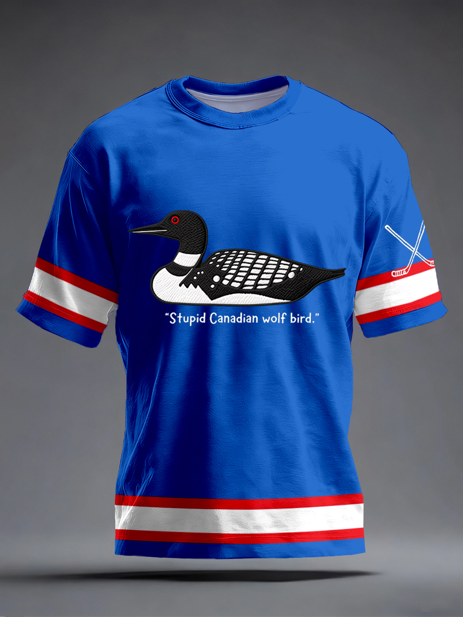 Men's Stupid Canadian Wolf Bird Print Casual T-shirt
