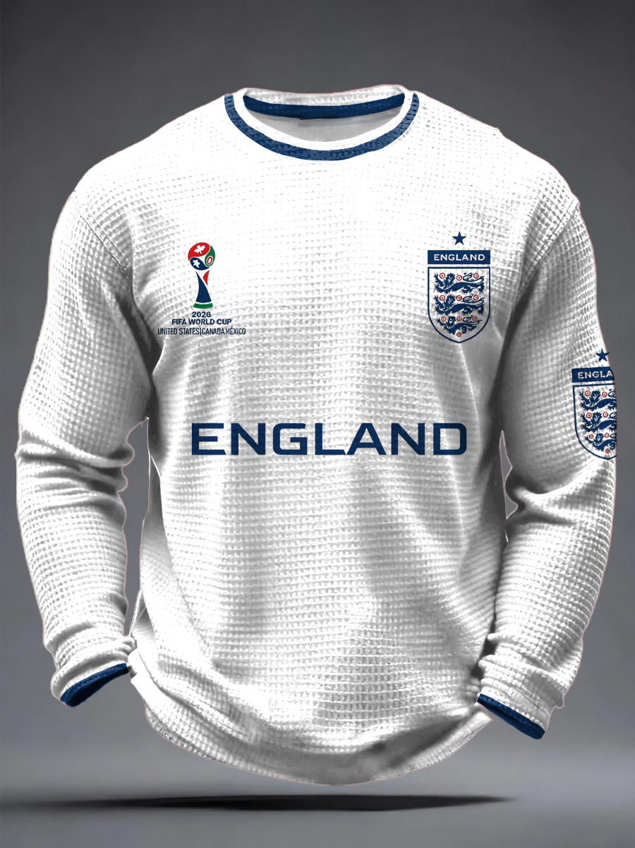 Men's UK Football Lover England 2026 Printed Waffle Long Sleeve T-Shirt