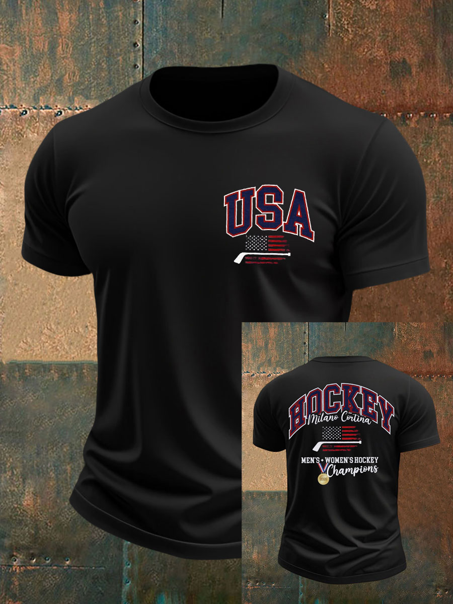Men's American Hockey Print Casual T-Shirt