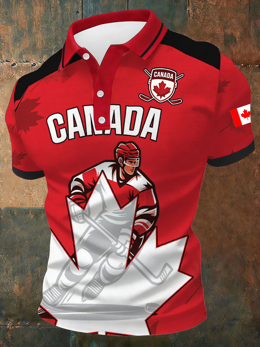 Men's Vintage Canada Hockey Printed Casual Henley Shirt