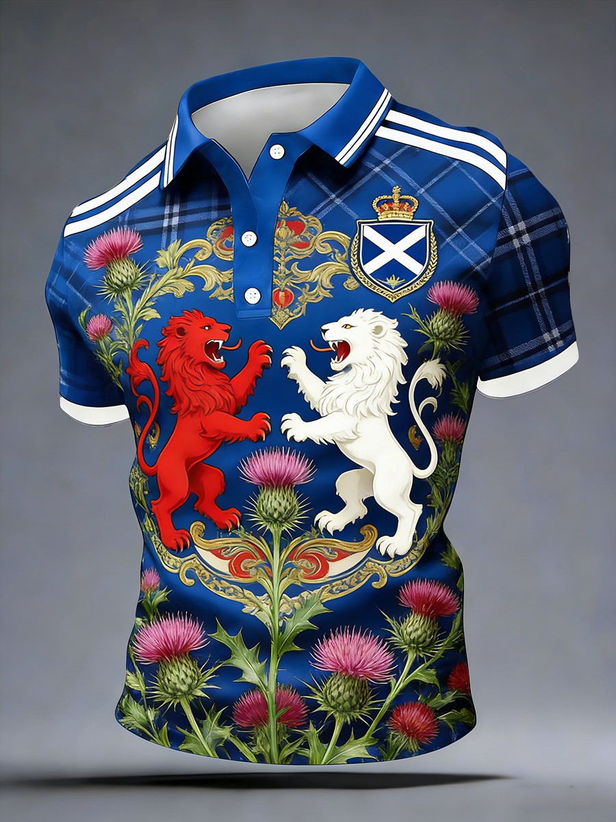 Men's vintage British football fan printed casual polo shirt