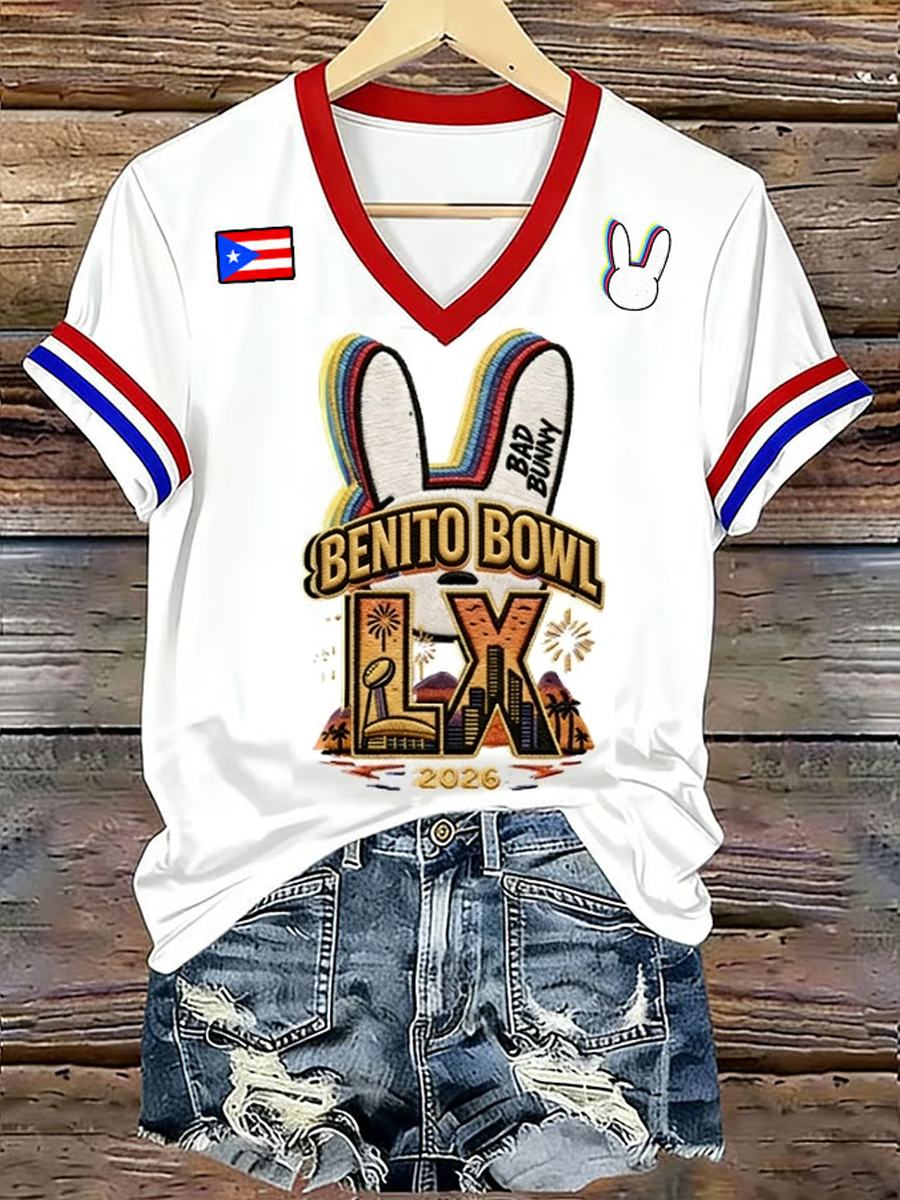 Women's Bunny Football Music Lover Printed short-sleeved T-shirt