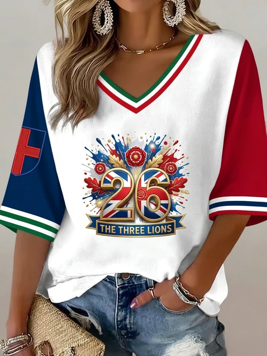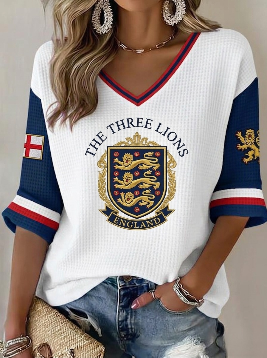 Women's Retro England Football Print Casual Cotton Waffle Long Sleeve T-Shirt