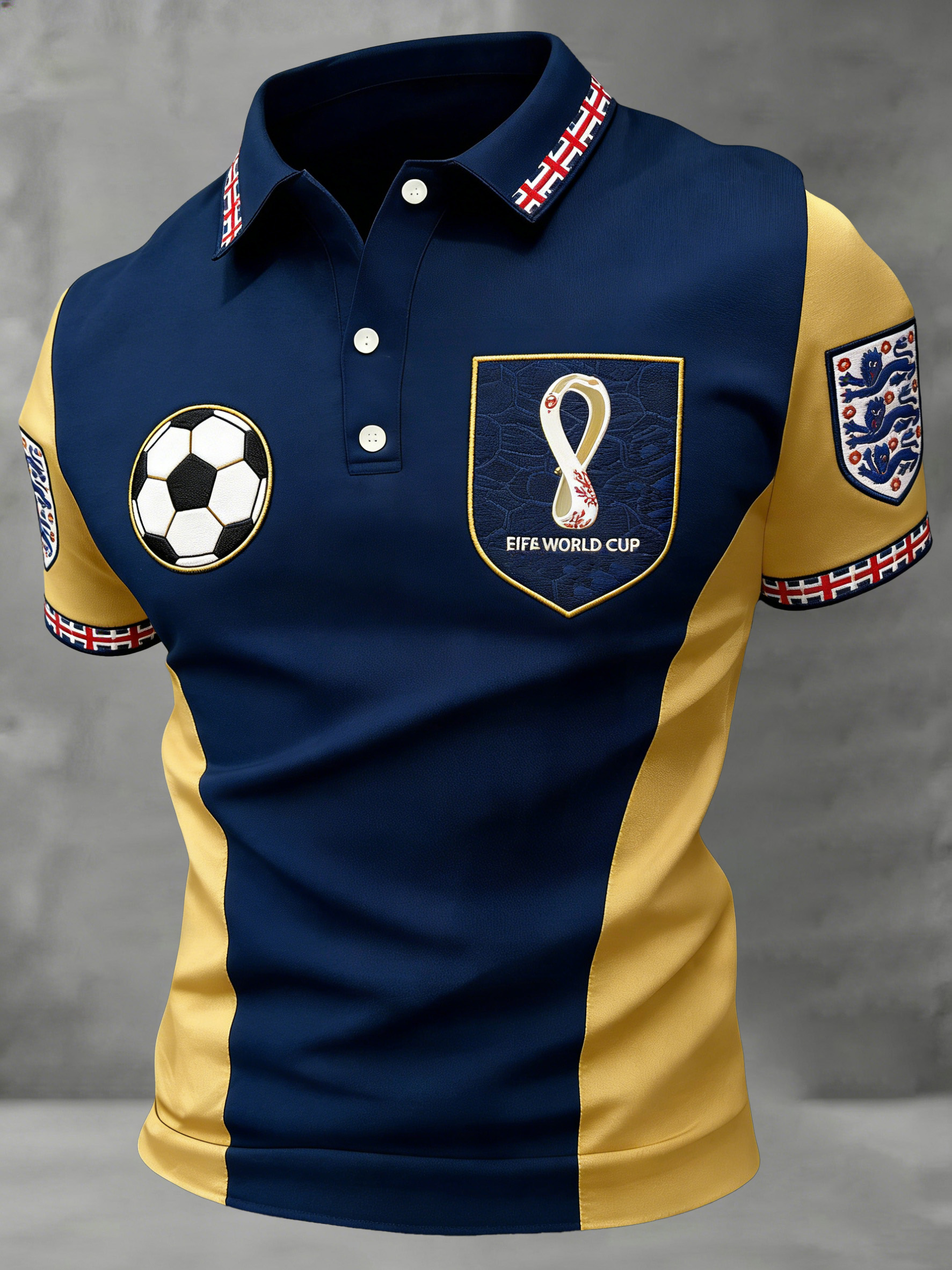 Men's British Football-Themed Polo Shirt with Artistic Print and Contrast Paneling