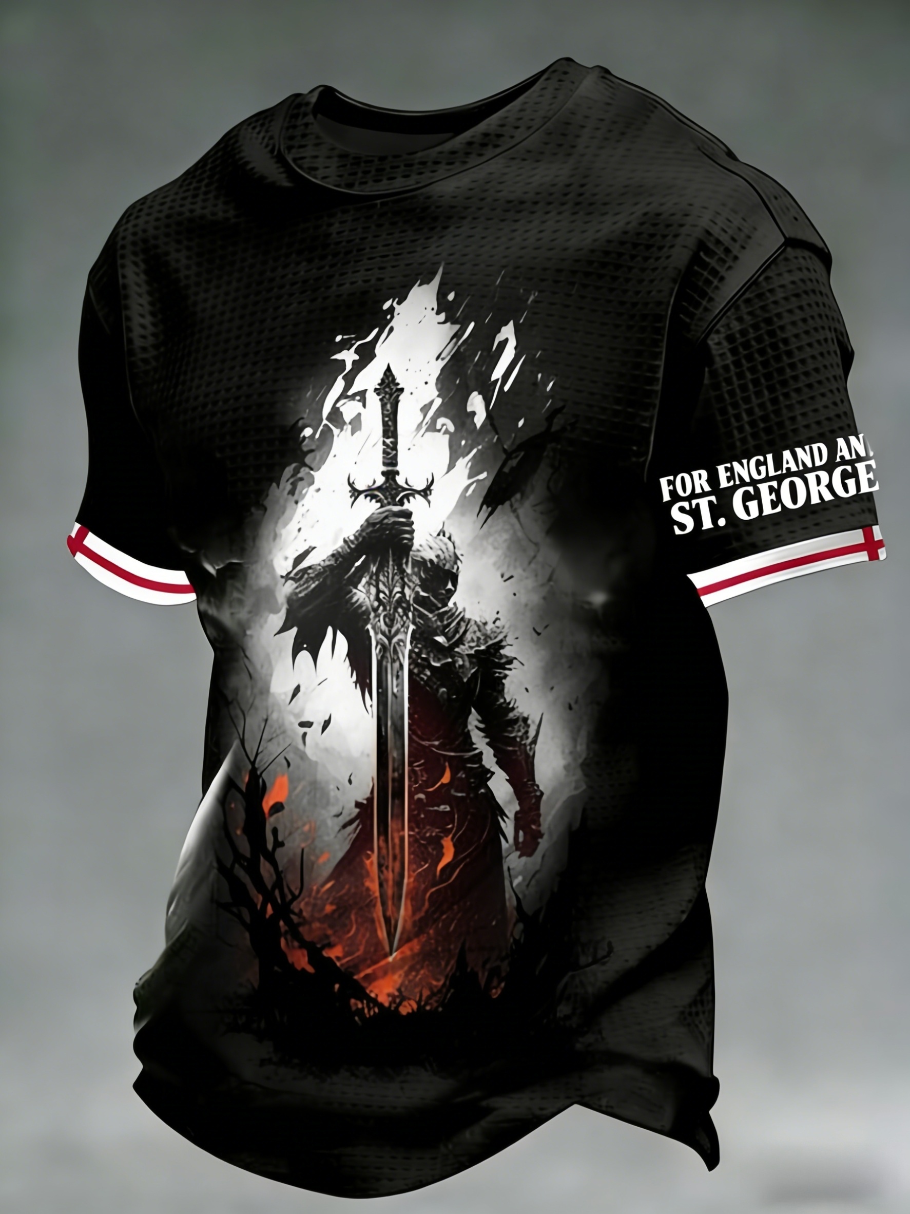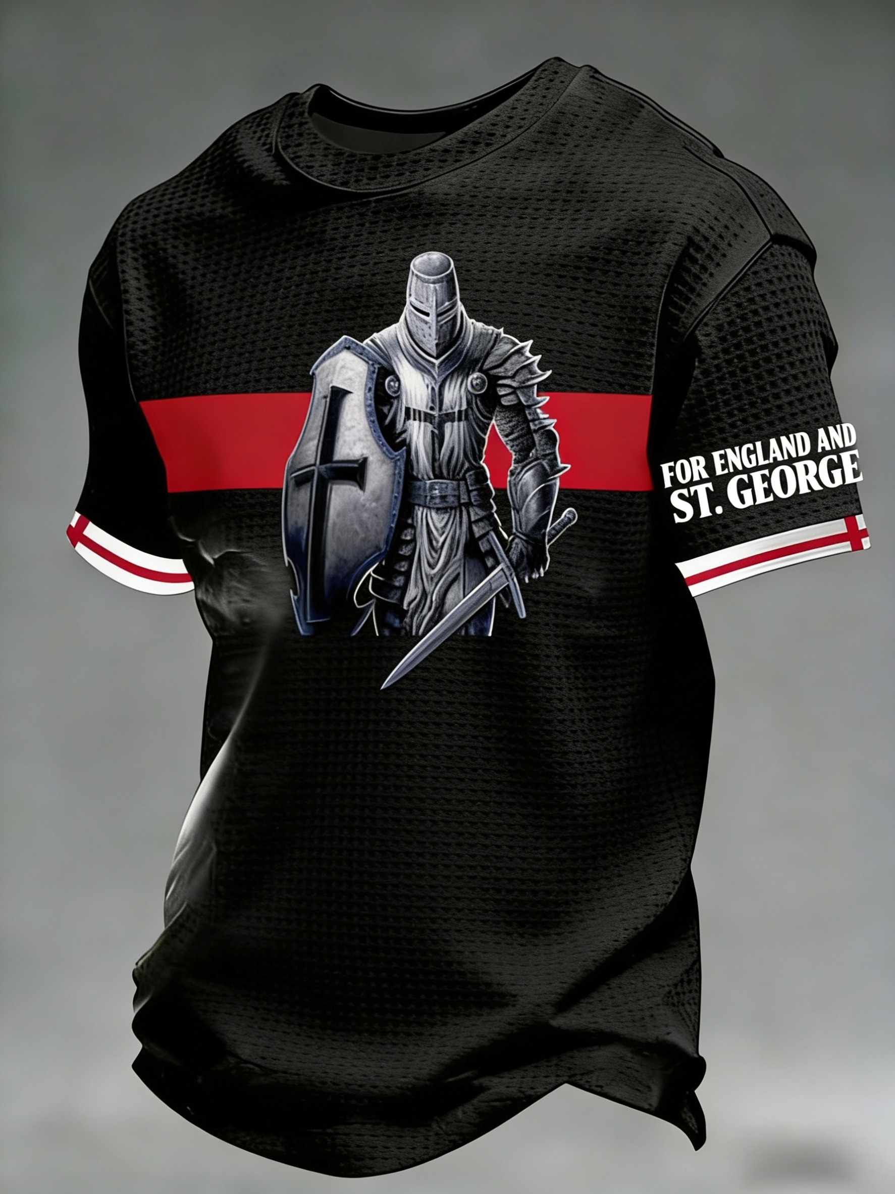 Men's Retro St George's Day Casual Waffle Short-Sleeve T-Shirt