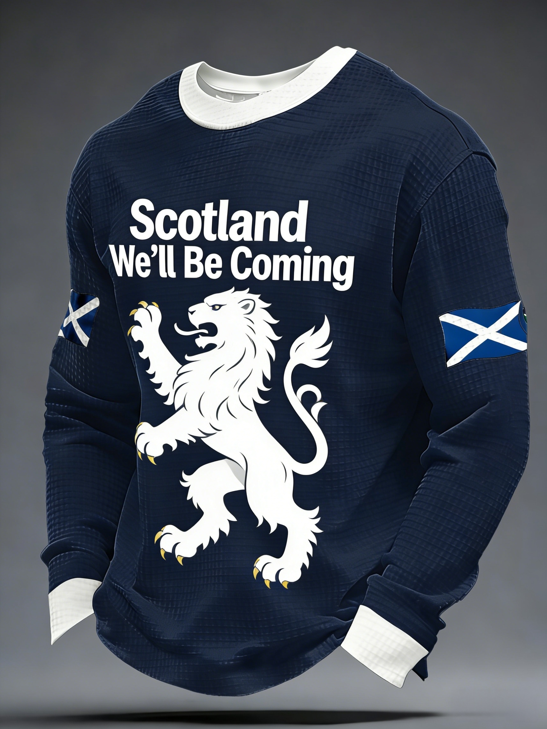 Unisex Scotland We'll Be Coming 2026 Football Lover Printed Waffle Long-sleeve T-shirt