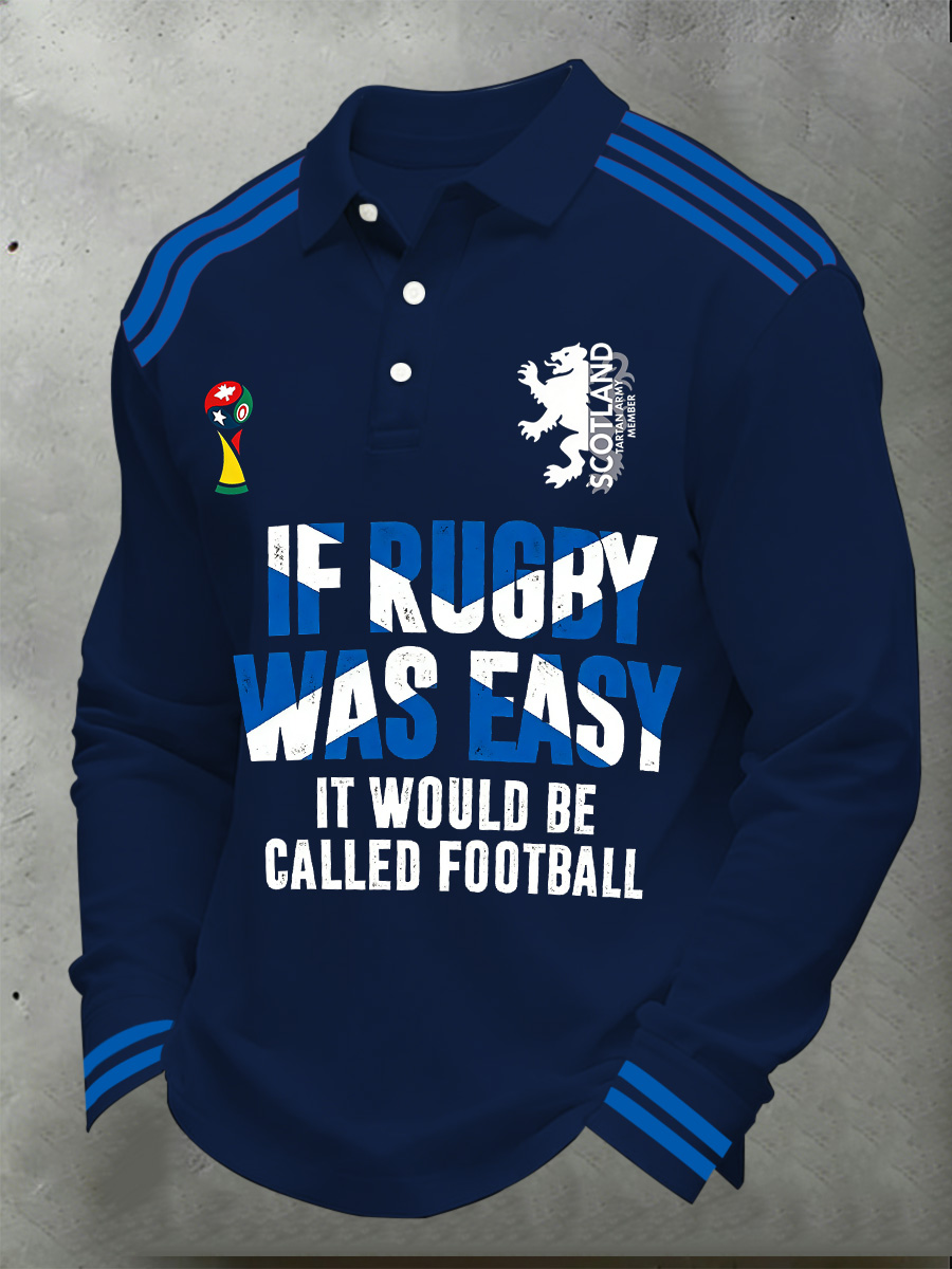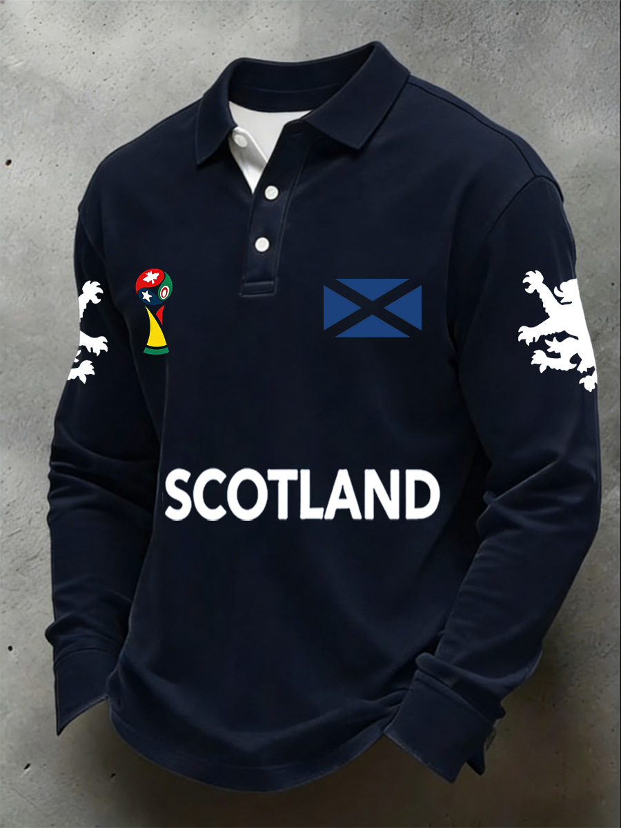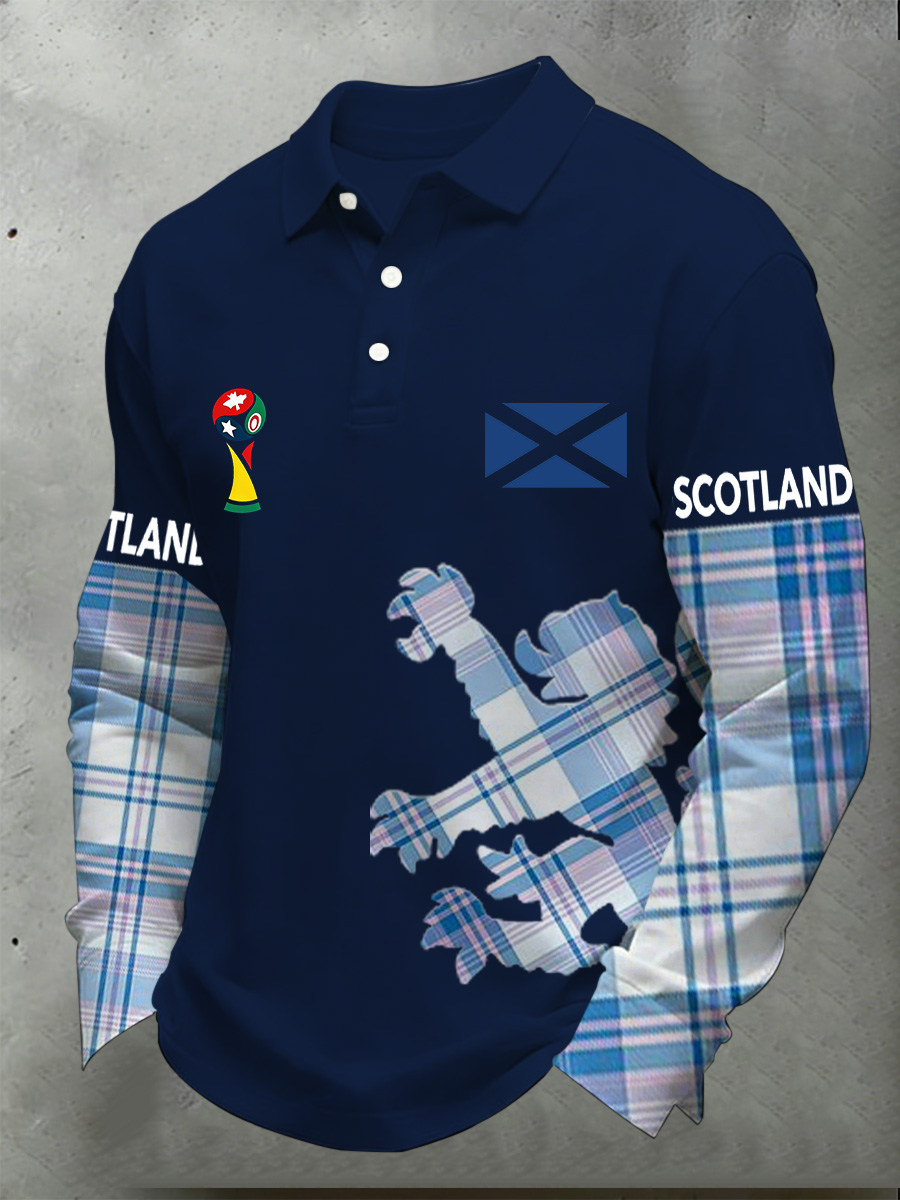 Men's Scotland World Cup Football Supporter Printed Long-Sleeve Polo Shirt