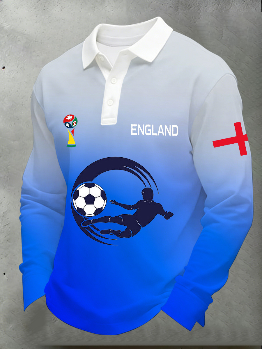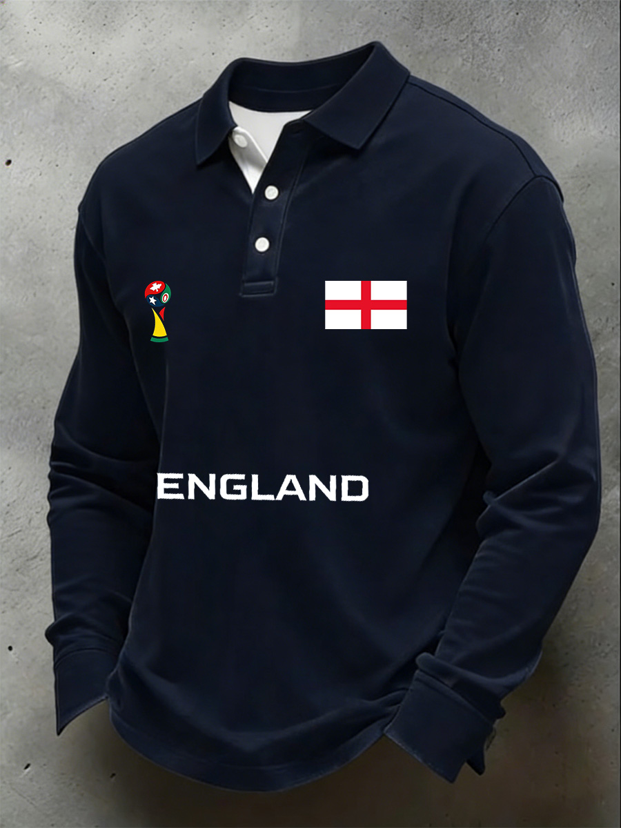 Men's England World Cup Football Supporter Printed Long-Sleeve Polo Shirt