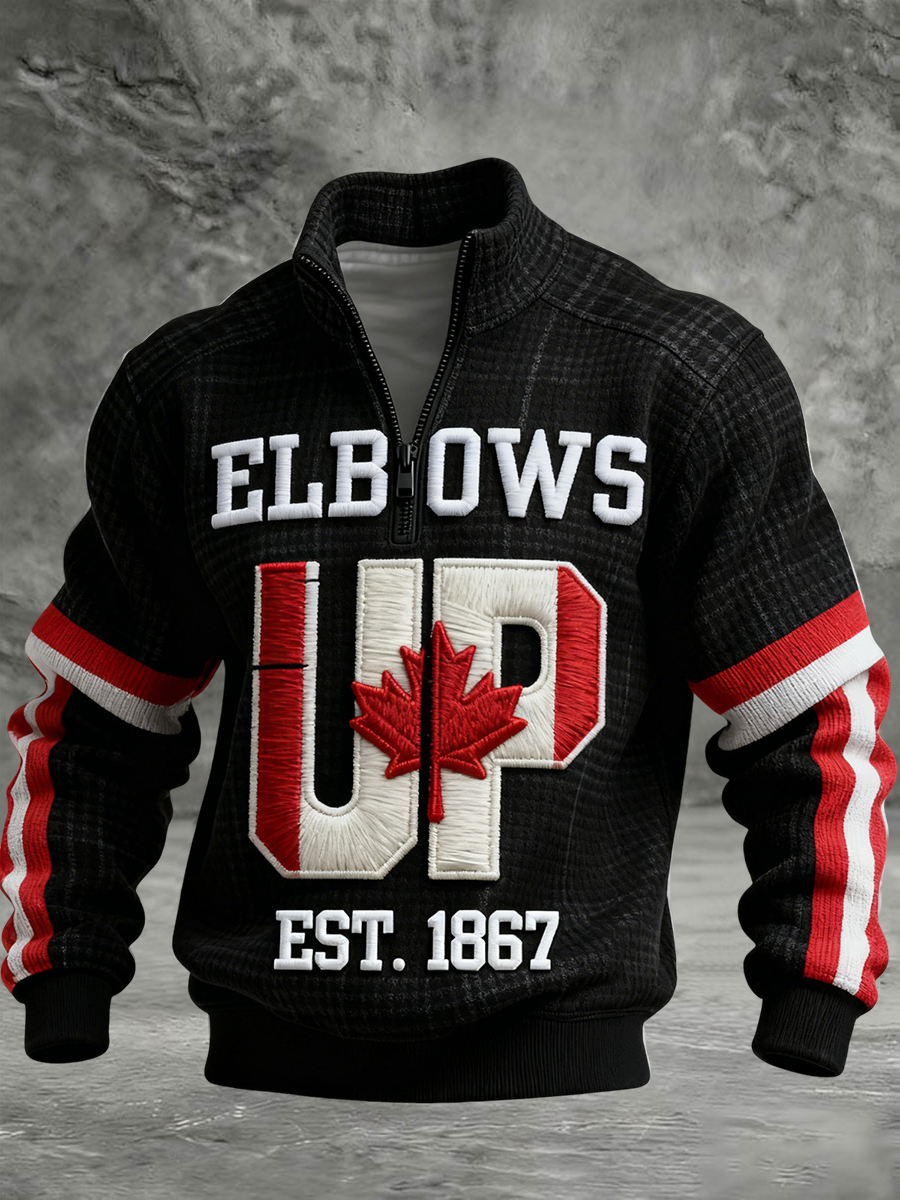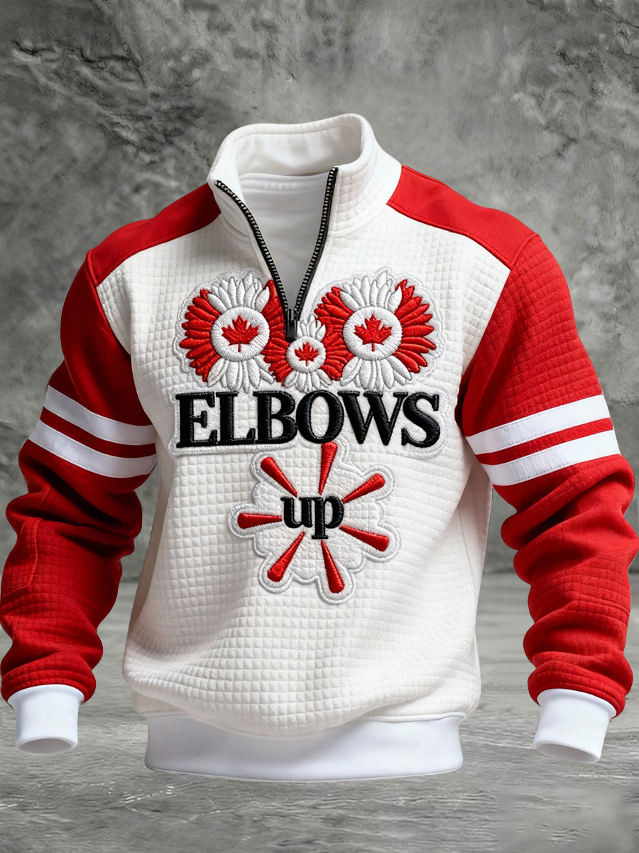 Retro Canada Elbows Up Patchwork Casual Zipper Waffle Knit Pullover