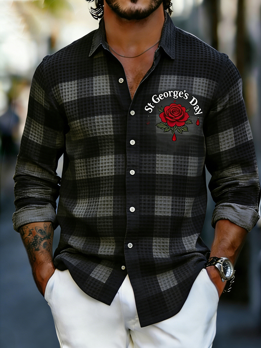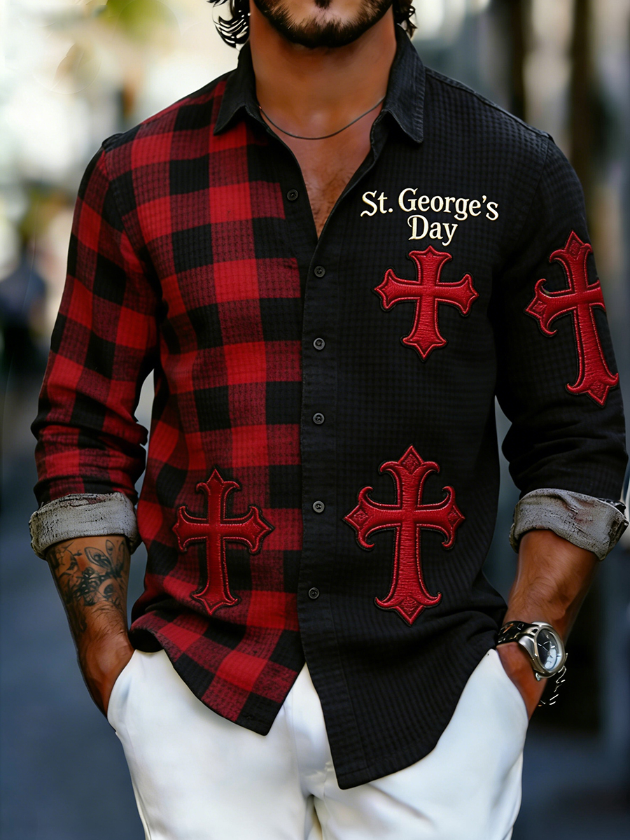 Men's Retro St George's Day Casual Long-Sleeve Shirt