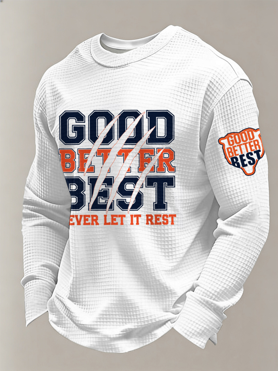 Men's Good Better Best Print Football Fans Gameday Casual Waffle Long Sleeve T-Shirt