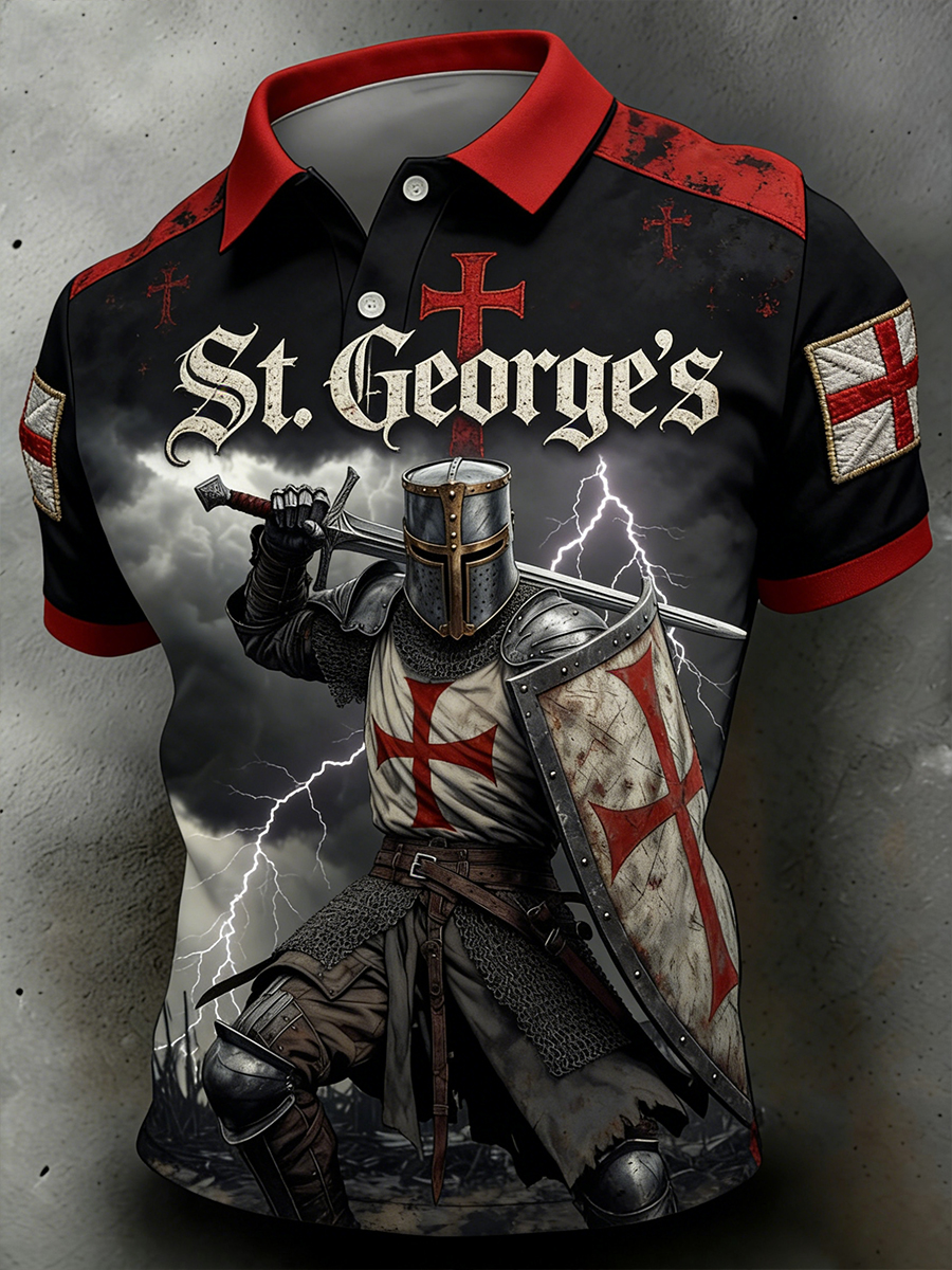 Men's St. George's Day Themed Printed Polo Shirt