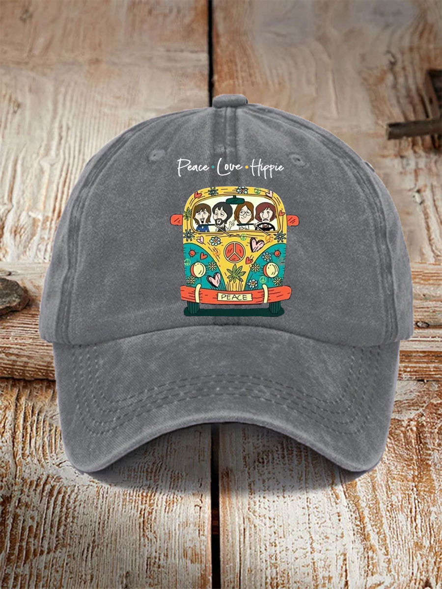 Unisex Peace Love And Hippie Classic Legendary Rock Band Print Hat